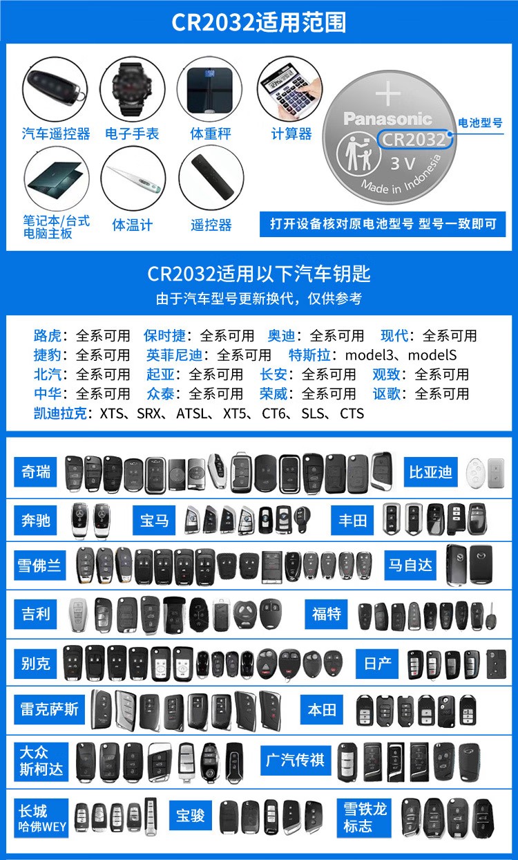 松下(Panasonic)CR2032进口纽扣电池3V适用汽车钥匙遥控器