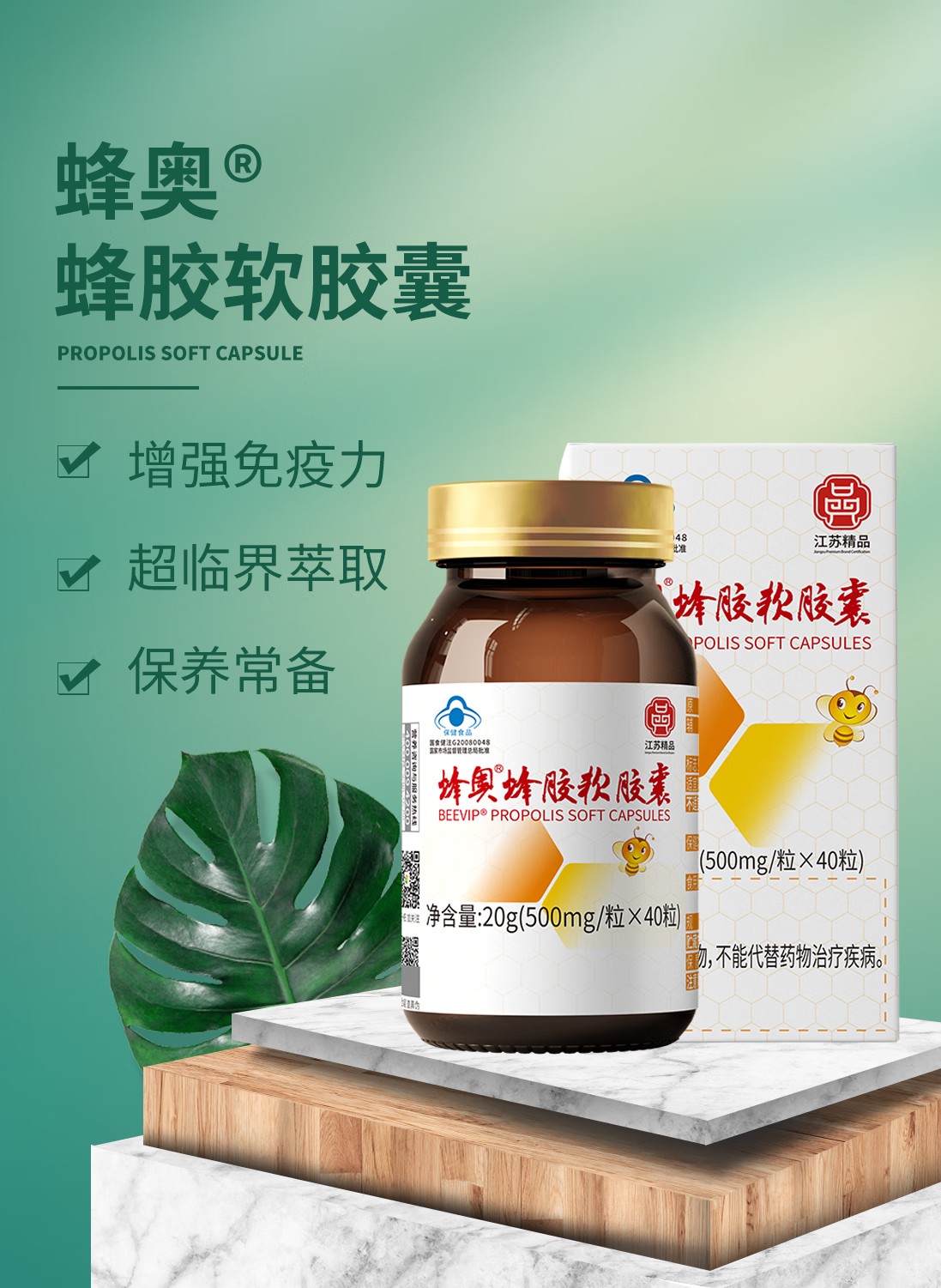 蜂奥蜂胶软胶囊 第三代 包装 黄蜂胶 增强免疫力 40/粒/盒×1盒