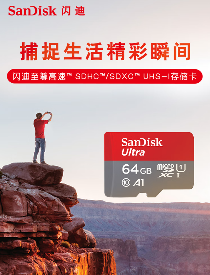 闪迪(SanDisk)64GB TF(MicroSD)内存卡 A1 至尊高速移动版存储卡