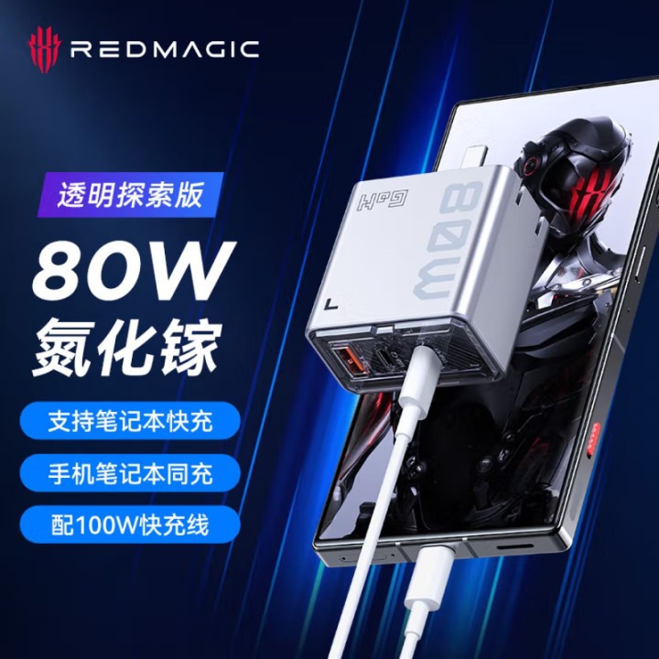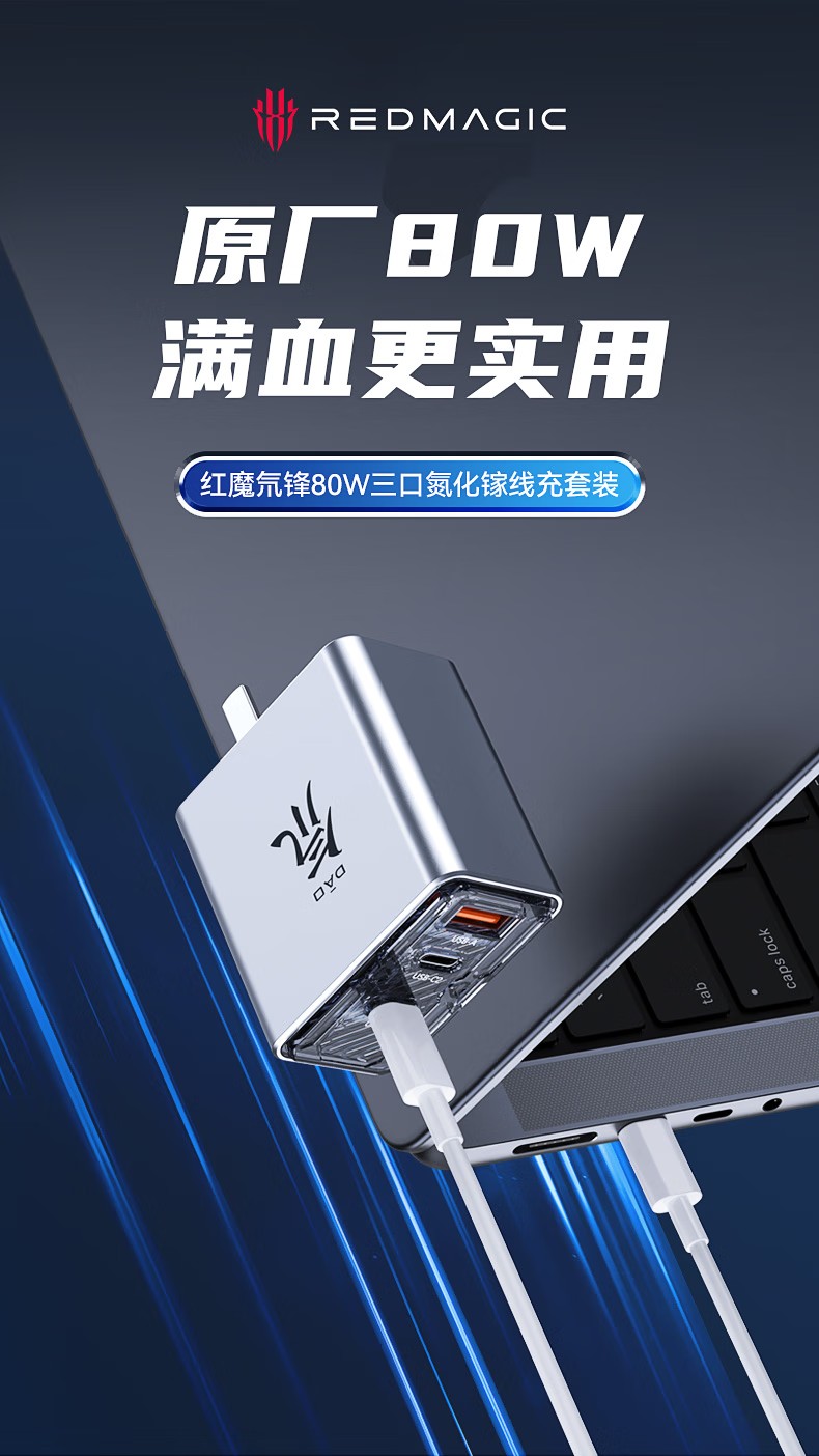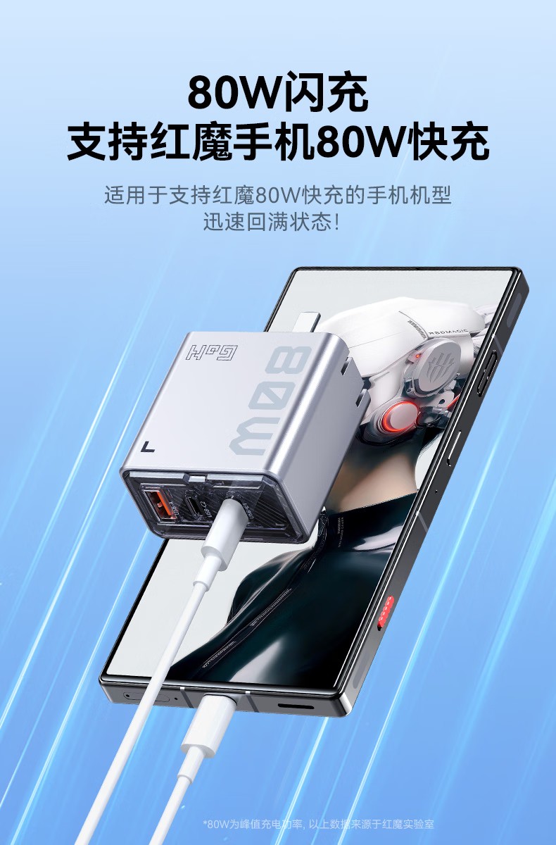 红魔80W氘锋氮化镓充电器套装快充头